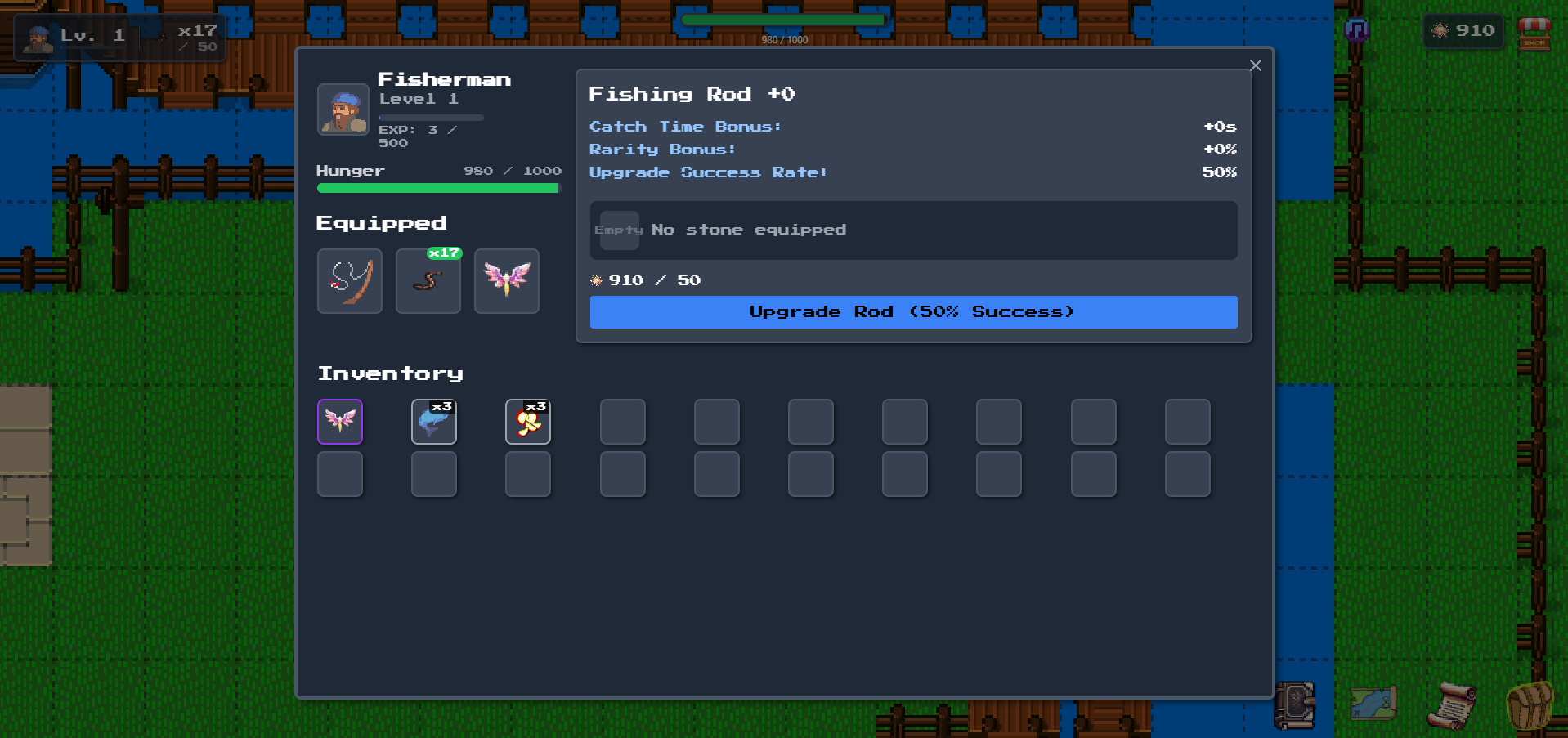 ๐ฐ Sell your catch for Arcane Points or trade them for worms ๐ชฑ. Upgrade your rod ๐ง, enhance it with mystical stones ๐, and boost your fishing success.